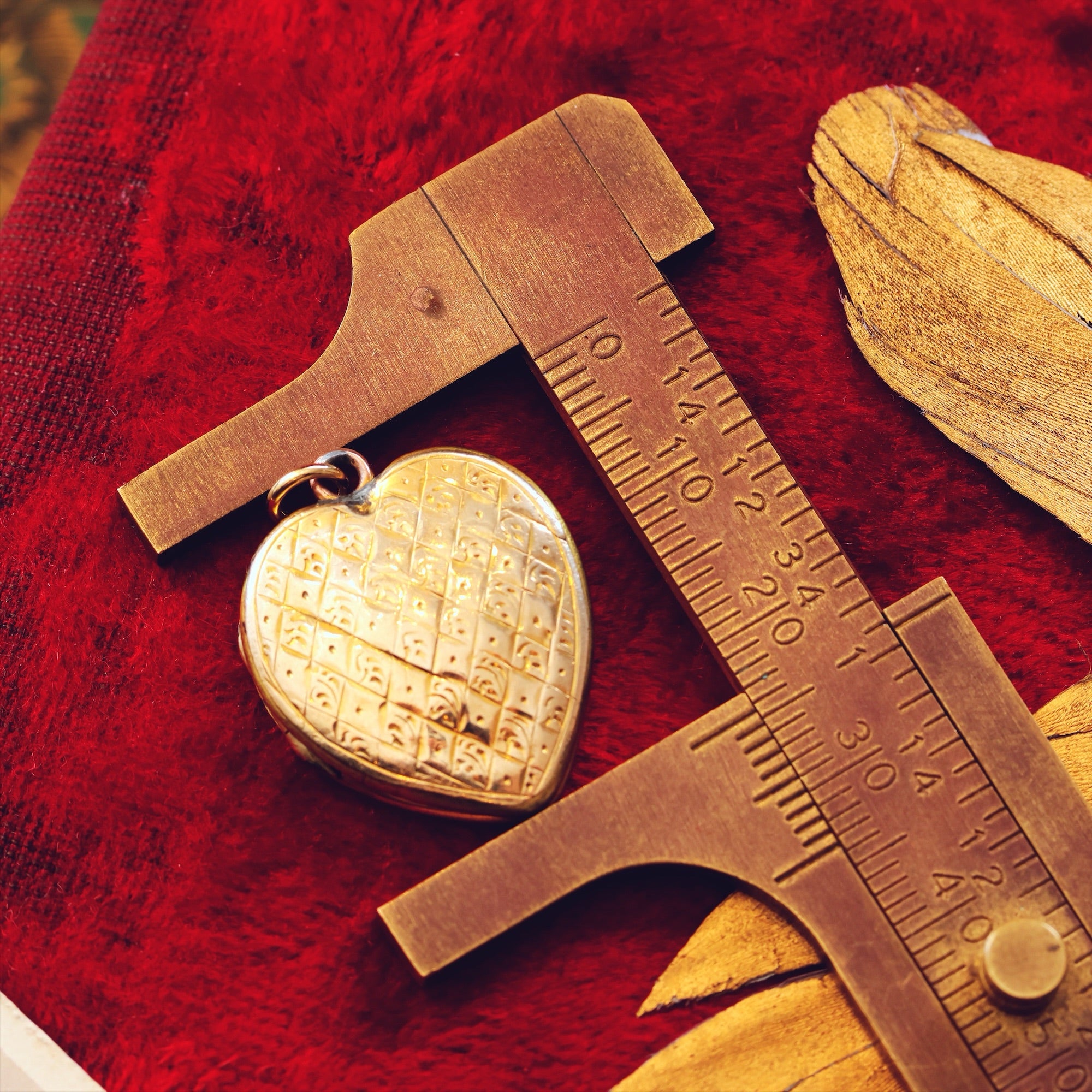 Much loved, this antique early 20th century 9ct Gold locket is smoothed with loving wear. The romantic heart shape one to capture fondness and accentuated by the lavishly hand engraved Ivy leaves which cover the frontispiece (IVY symbolising the ties of love and family). It opens to show the original glassed compartment and measures just short of one inch lengthwise.