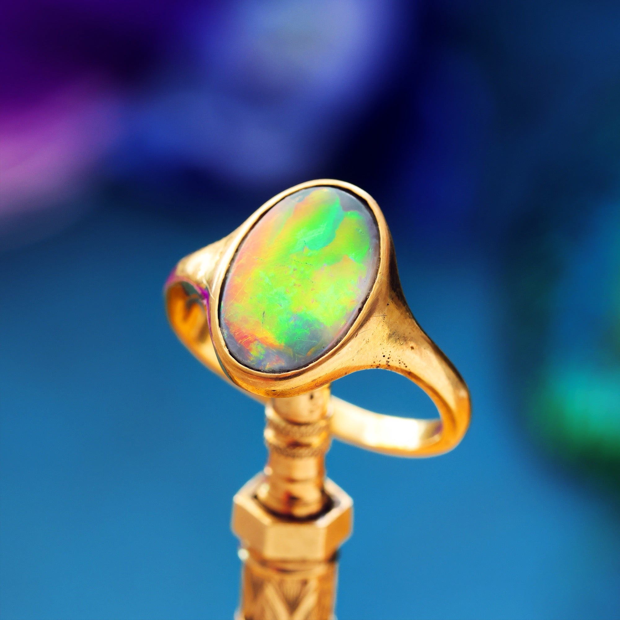 Antique Fiery Magic Black Opal Ring