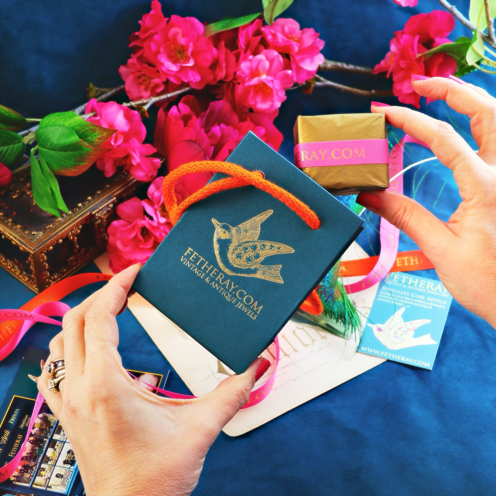 We've never seen a ring quite like this one... the sweetly foliate 'branches' hold the gems close to the finger and neatly meet the 18ct Yellow Gold band. All original and ethically sound, one couldn't make a better choice.