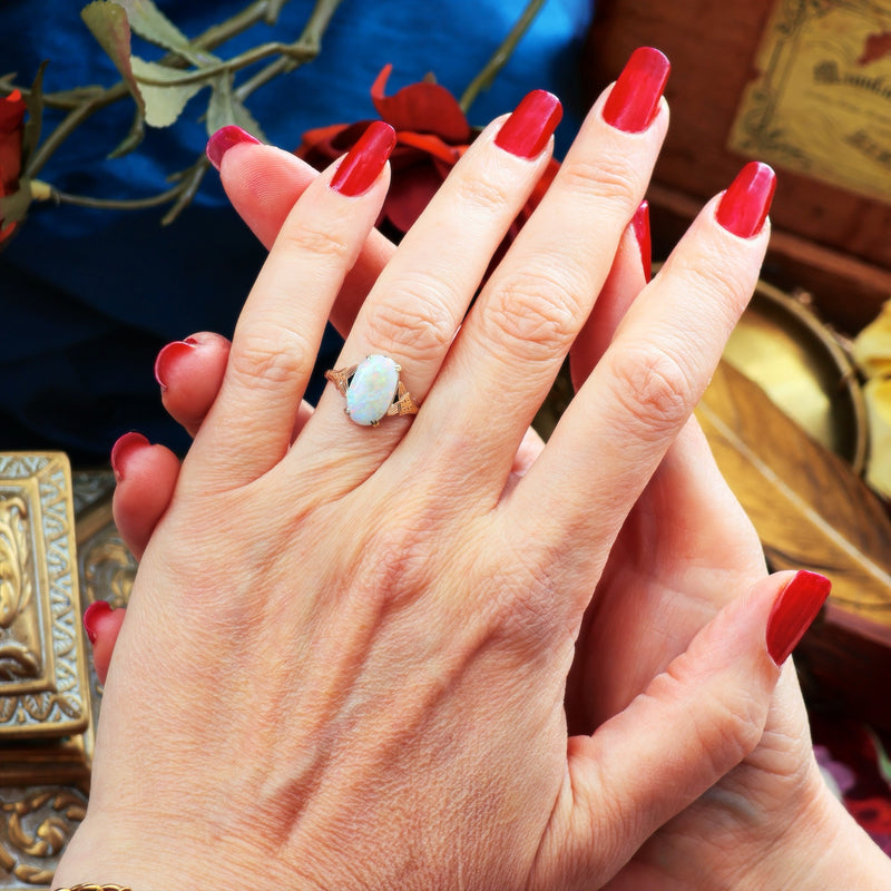 Vintage 9ct Rose Gold Opal & Ruby Ring