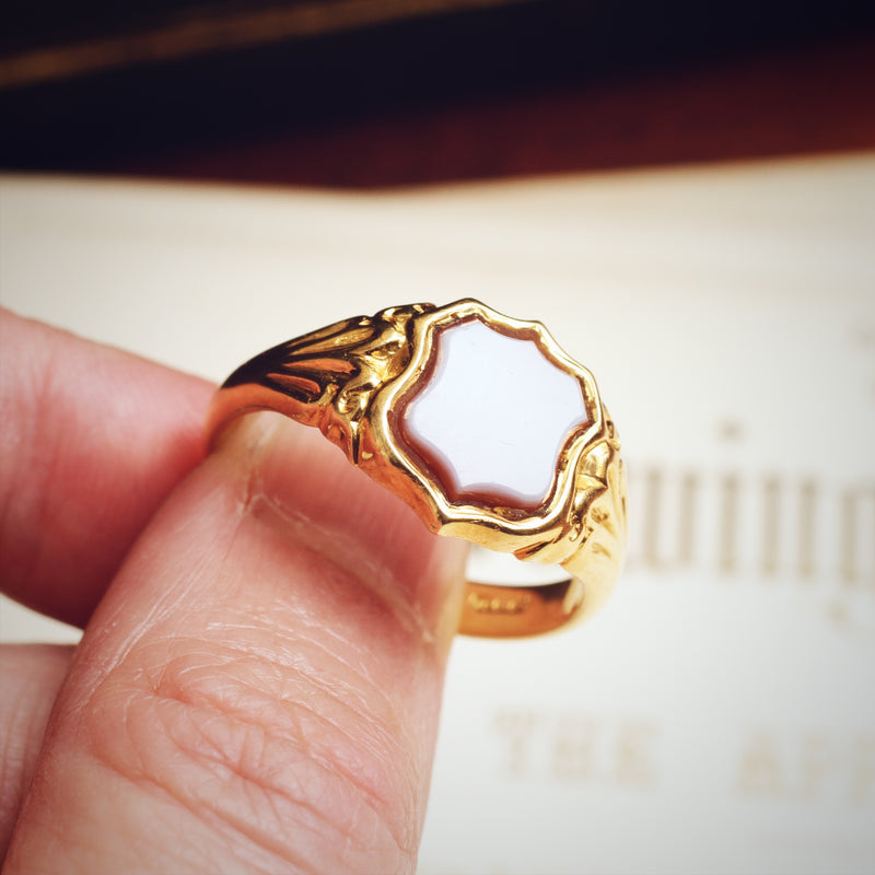 Date 1935 Sardonyx Intaglio Signet Seal Ring