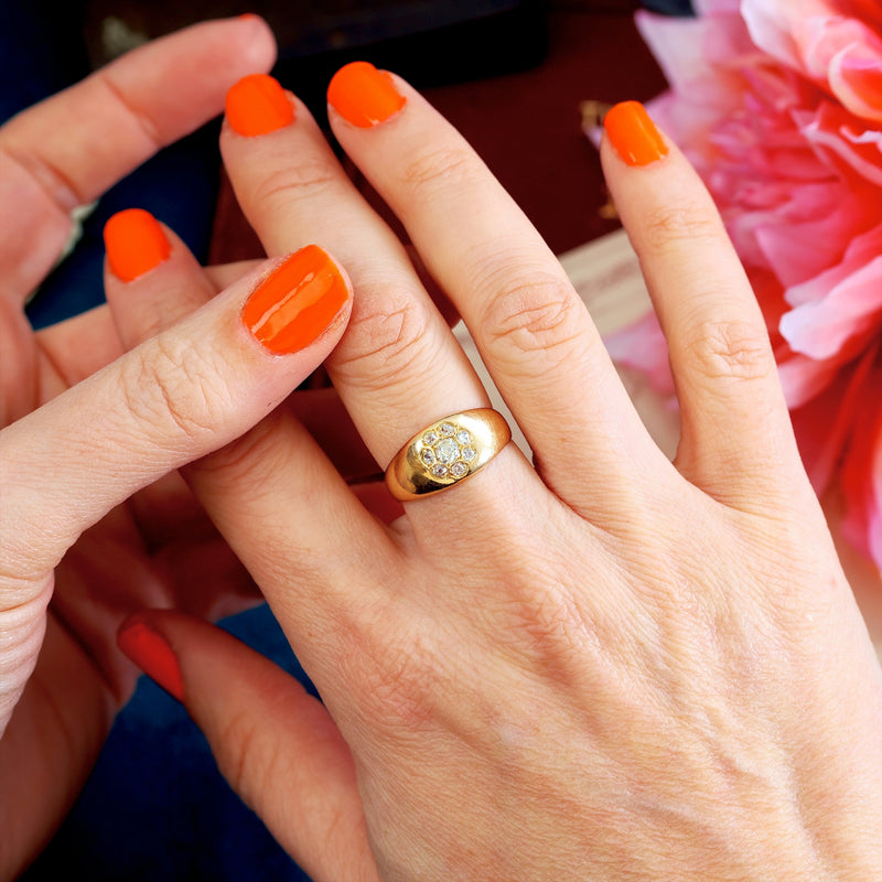 Beautiful Antique 18ct Gold Floral Diamond Band