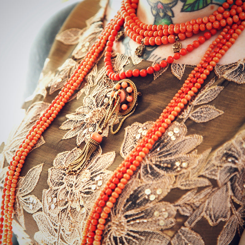 Antique and vintage Georgian and Victorian Mediterranean Coral jewellery. Our collection spans the centuries and includes many unique and hand crafted pieces with great individuality. The best ethical choice as well as being top for individuality, all can be viewed in our Brighton Lanes Jewellery Quarter shop.
