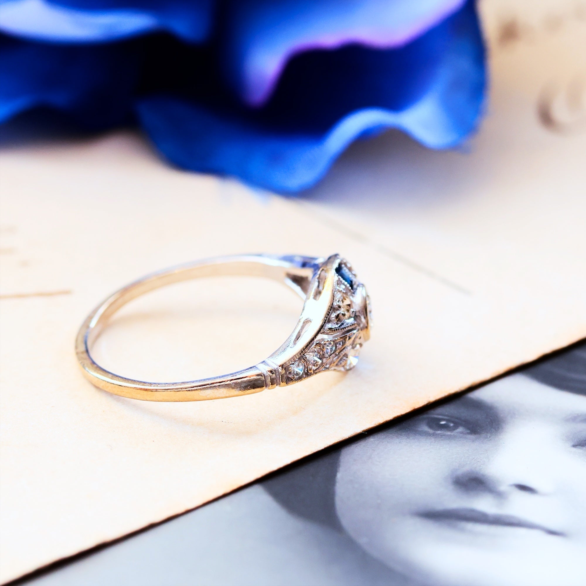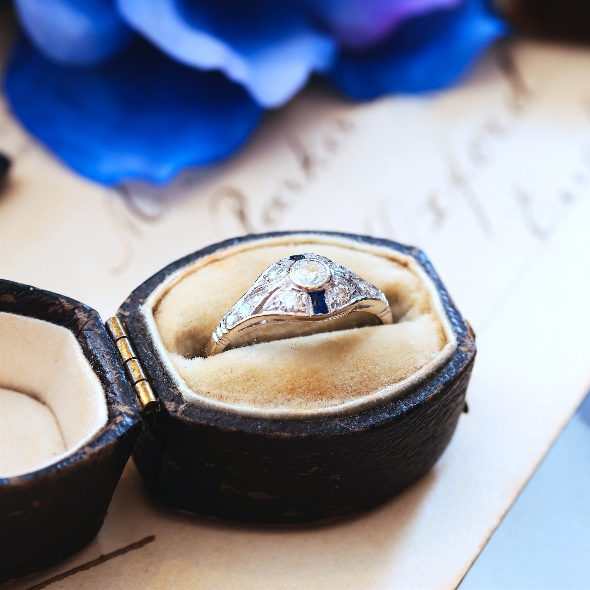 Vintage Art Deco Style Sapphire & Diamond Ring