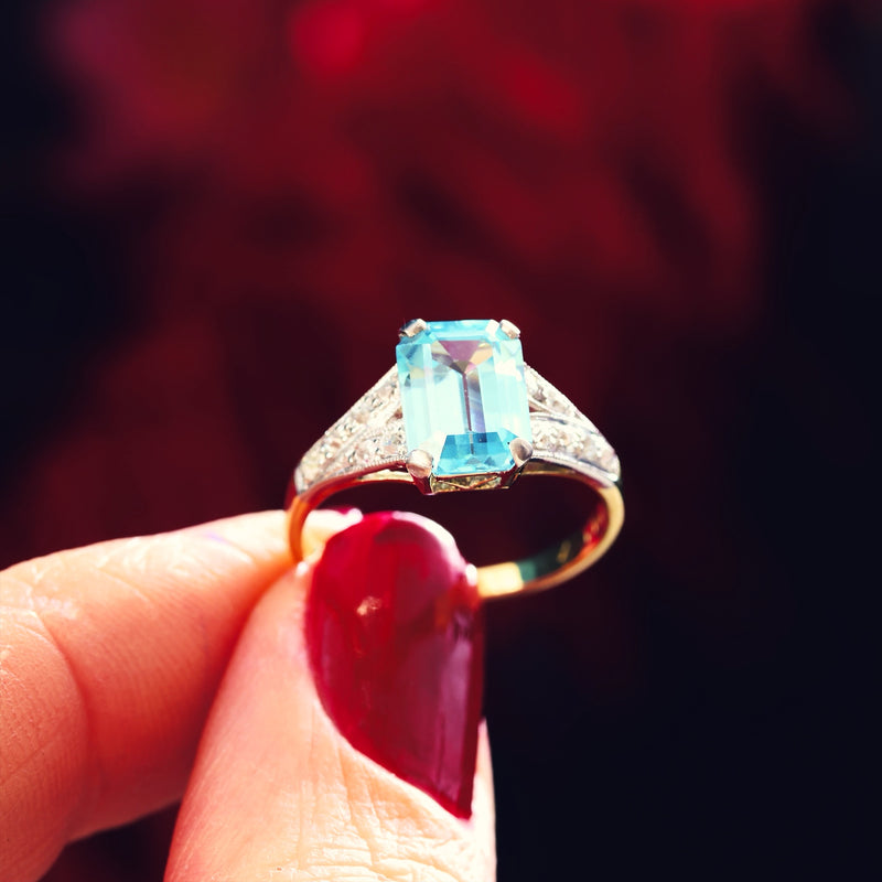 Vintage Art Deco Style Sapphire & Diamond Ring