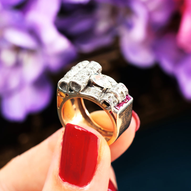 Sensational!! Vintage 1940's Art Deco Diamond Cocktail Ring