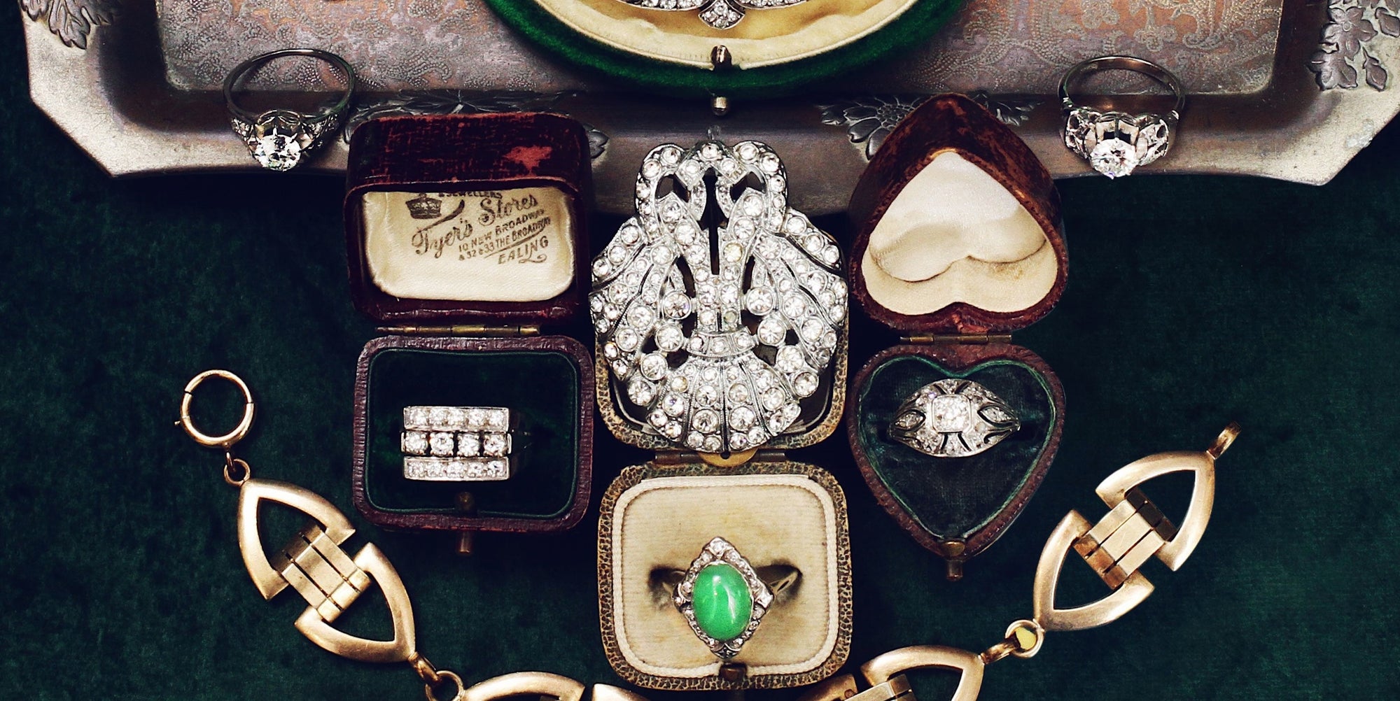 Seek inspiration with stylish original vintage Art Deco jewellery from the 1920's and 1930's. Rings; earrings; necklaces; brooches and clips... everything an Art Deco icon needs to complete her dress! Our collection of vintage and antique jewellery spans the centuries and includes many unique and hand crafted pieces with great individuality. The best ethical choice as well as being top for individuality, all can be viewed in our Brighton Lanes Jewellery Quarter shop.