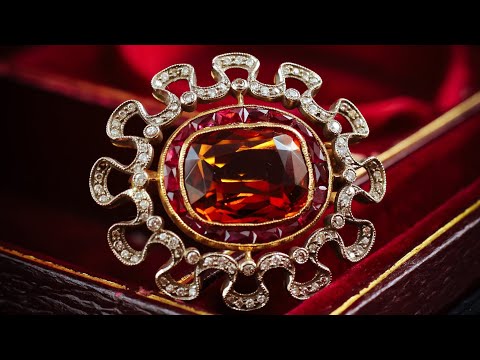 Extraordinary Antique Edwardian Citrine, Ruby and Diamond Brooch