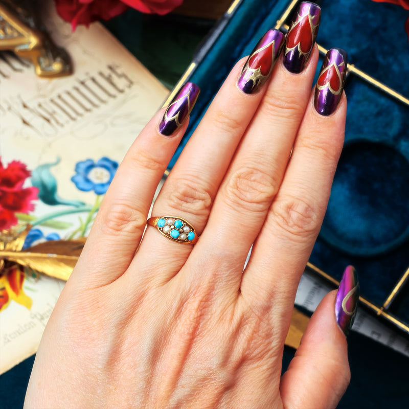 Precious and Meaningful Victorian Turquoise & Pearl Ring