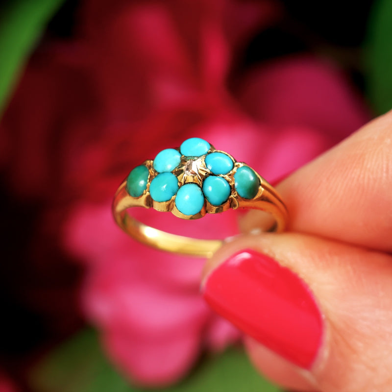 Fondest Victorian Turquoise & Diamond 'Forget me not' Ring