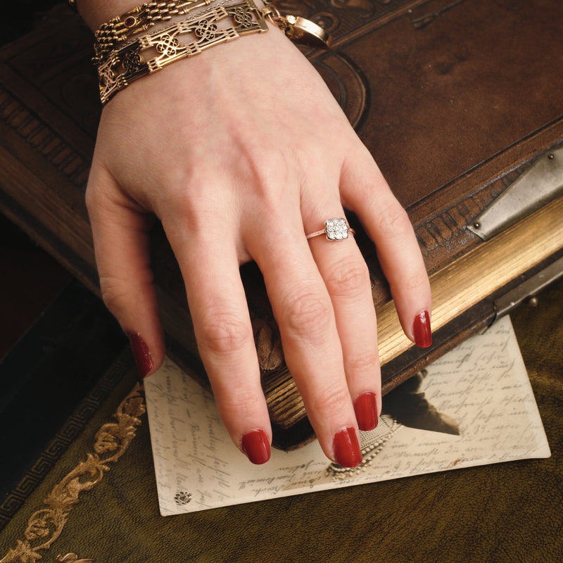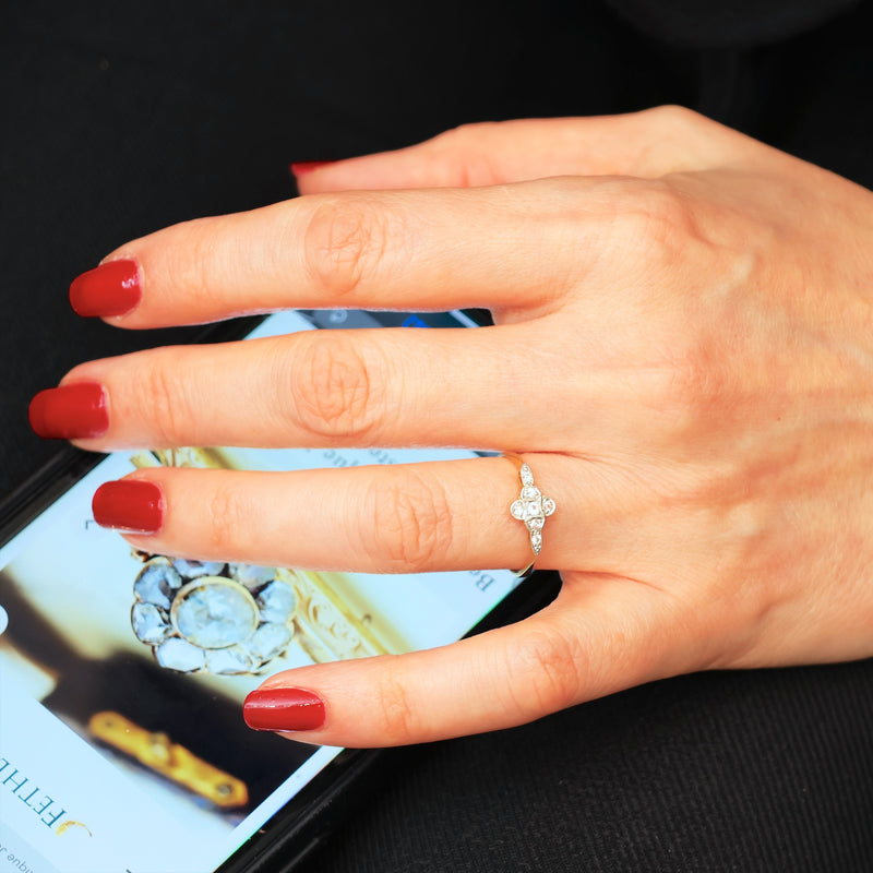 Maximal sparkly finger-bling! Vintage Diamond and Gemstone cluster rings, for when you just can't get too much glitter! In Gold and Platinum, and a super ethical choice as an engagement or anniversary ring, we look out for the uniqueness of antique hand cut Diamonds and hand wrought artisan workship which shows care and skill to delight the heart. We've lots to choose from and always have more tucked away, so please ask away if you don't see what you're looking for here...