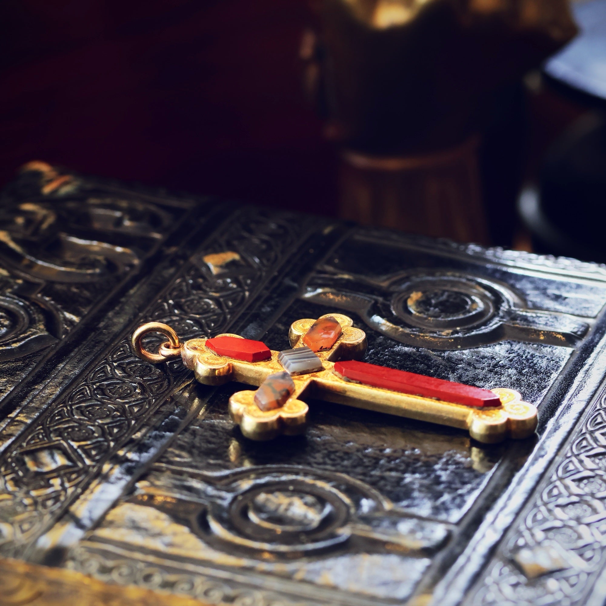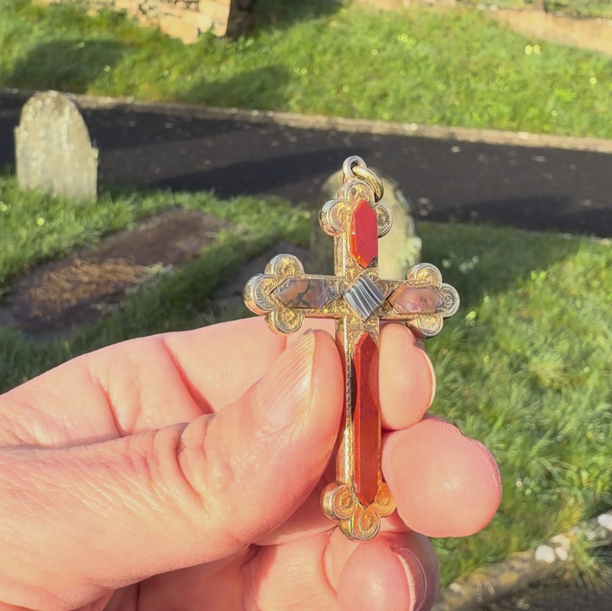 Victorian Scottish Agate Celtic Cross Pendant
