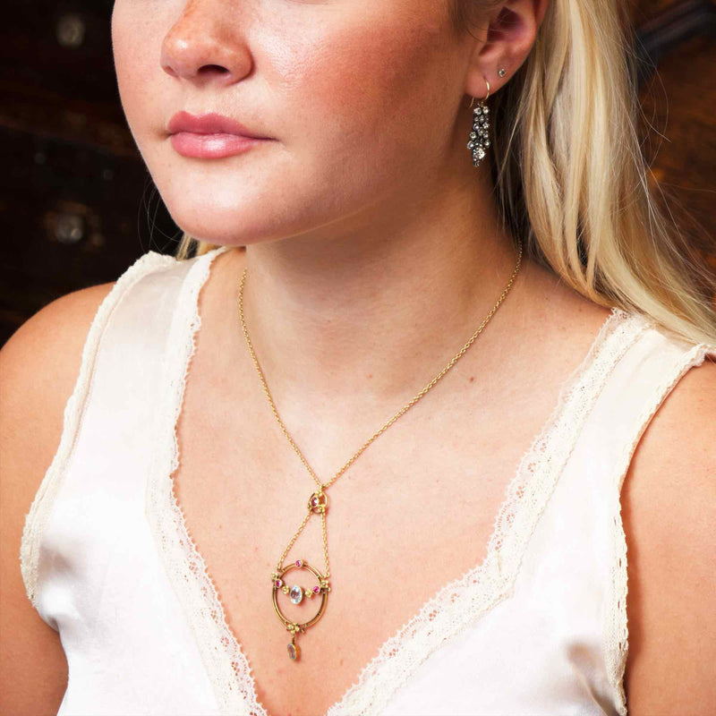 Antique Edwardian Aquamarine & Tourmaline Lavaliere Pendant