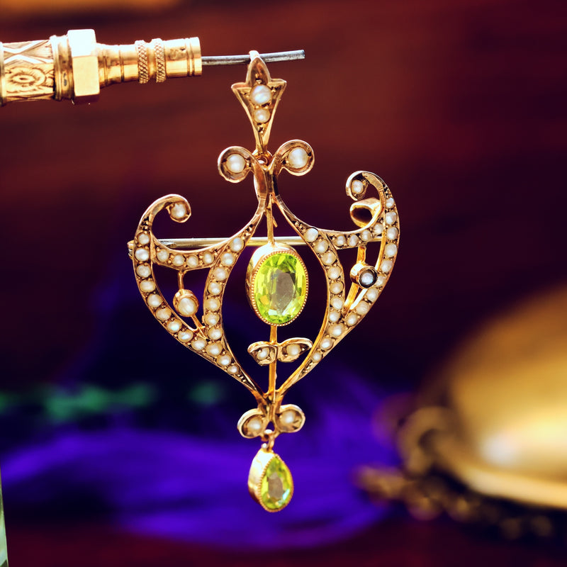 Antique Edwardian Peridot & Wild Pearl Pendant