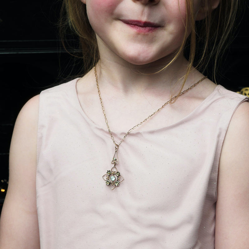 Edwardian Art Nouveau 15ct Gold Tourmaline Pendant