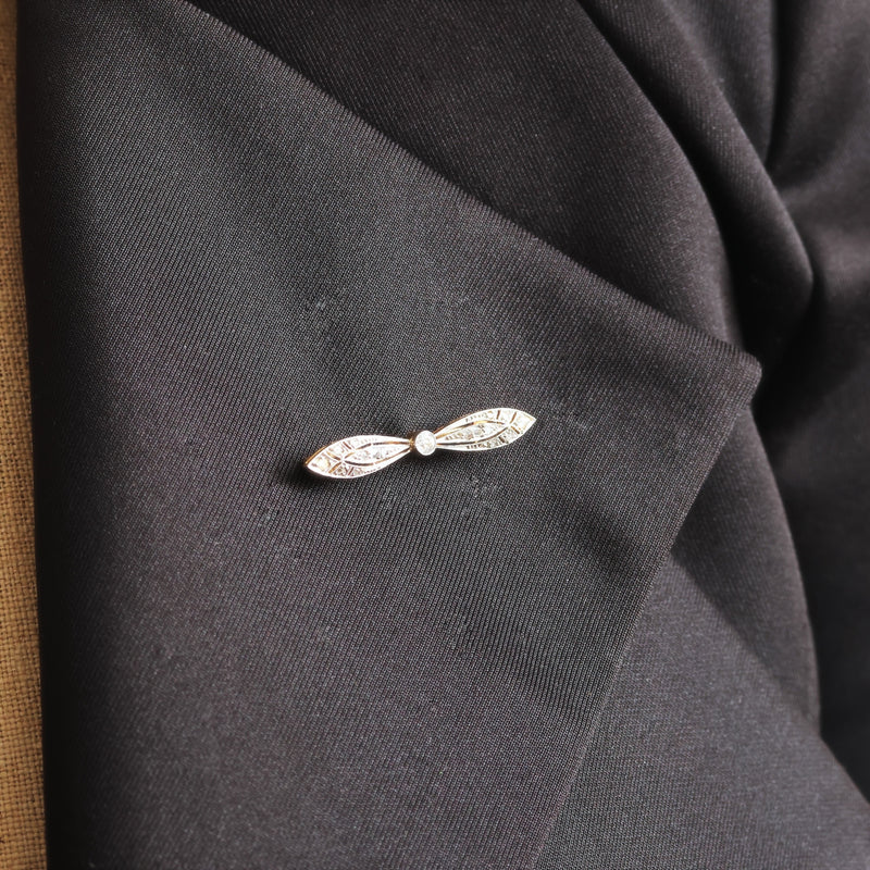 Sweetheart Vintage Diamond Bow Bar Brooch