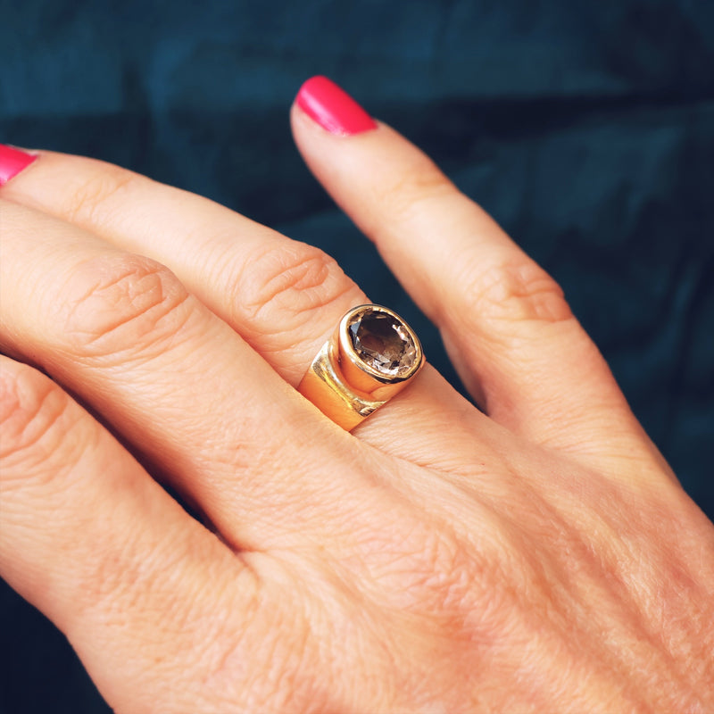 Vintage Modernist 9ct Gold Smokey Quartz Ring