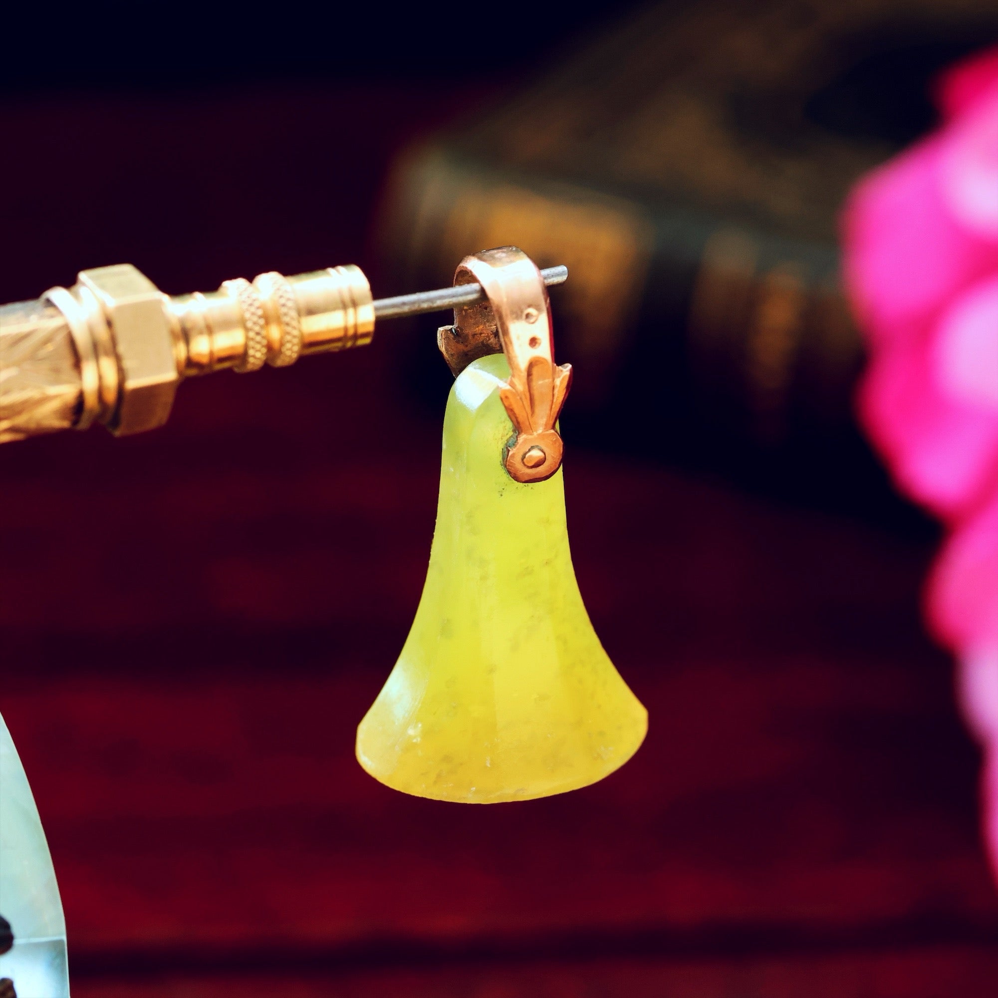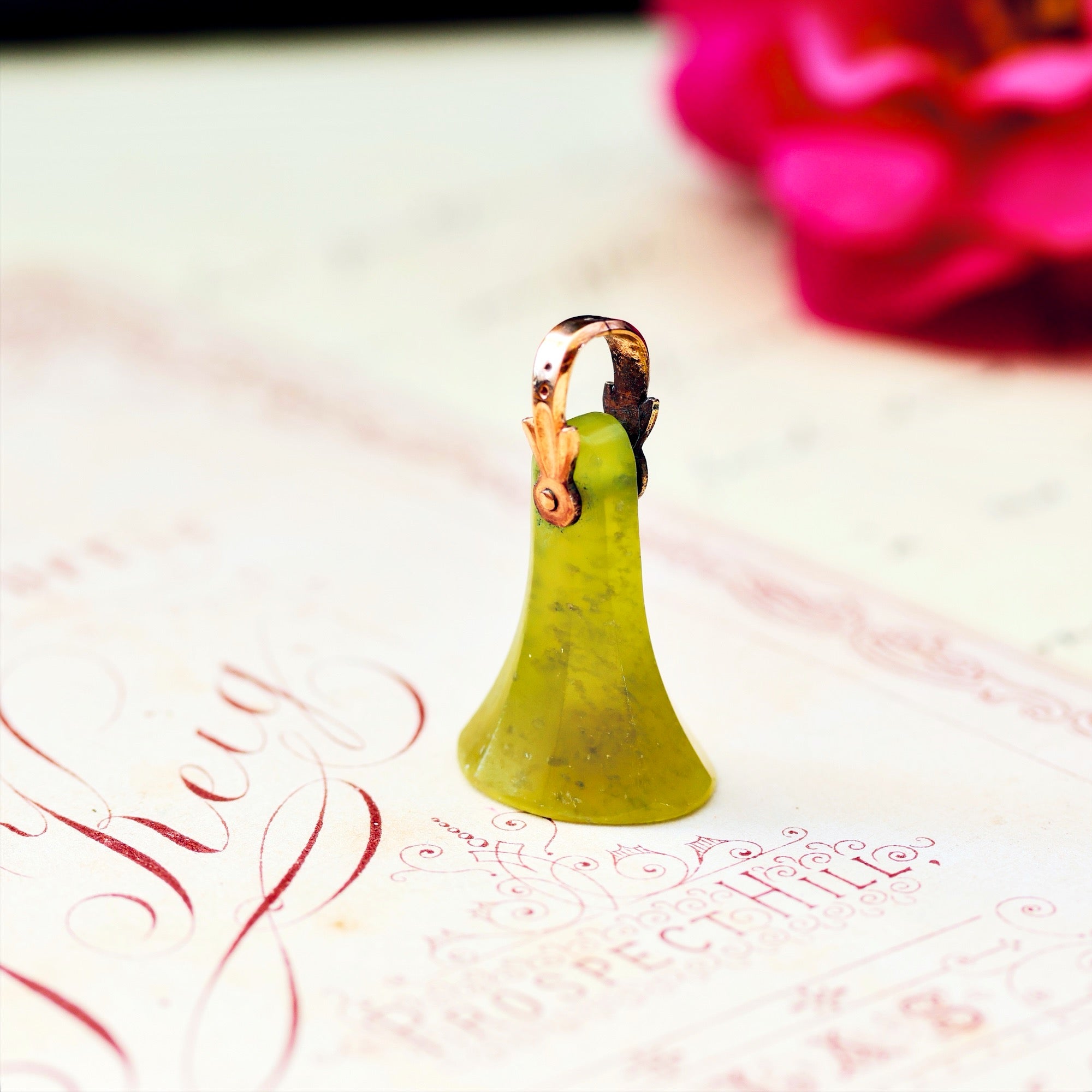 A quirky little personalised seal used for pressing closed your letters and missives with wax as ne did backwards in time. This pretty little example was carved in fleckled Jade and has been engraved with the two initials AE topped by a tiny crown.