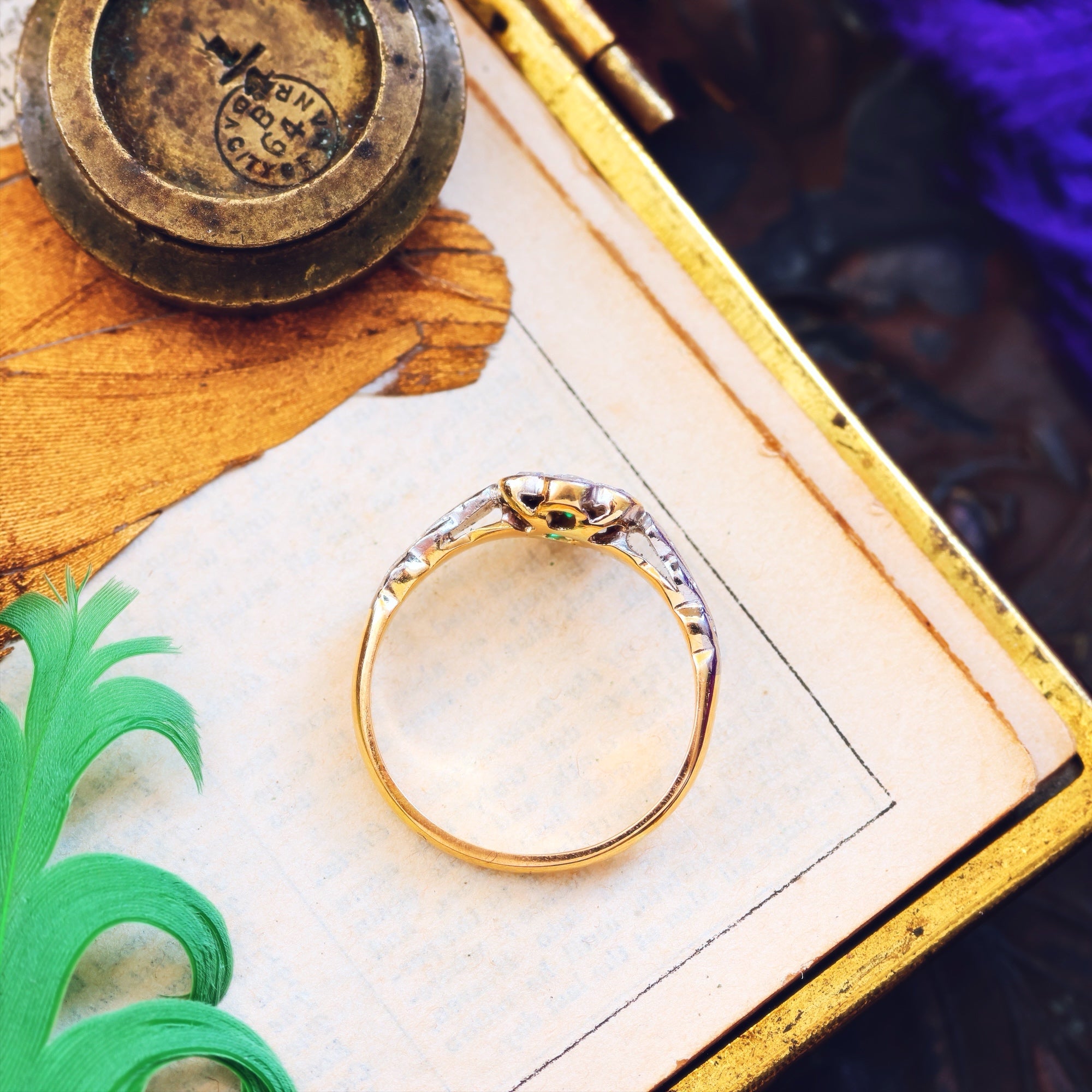 Dainty Little Vintage Emerald & Diamond Flowerette Ring