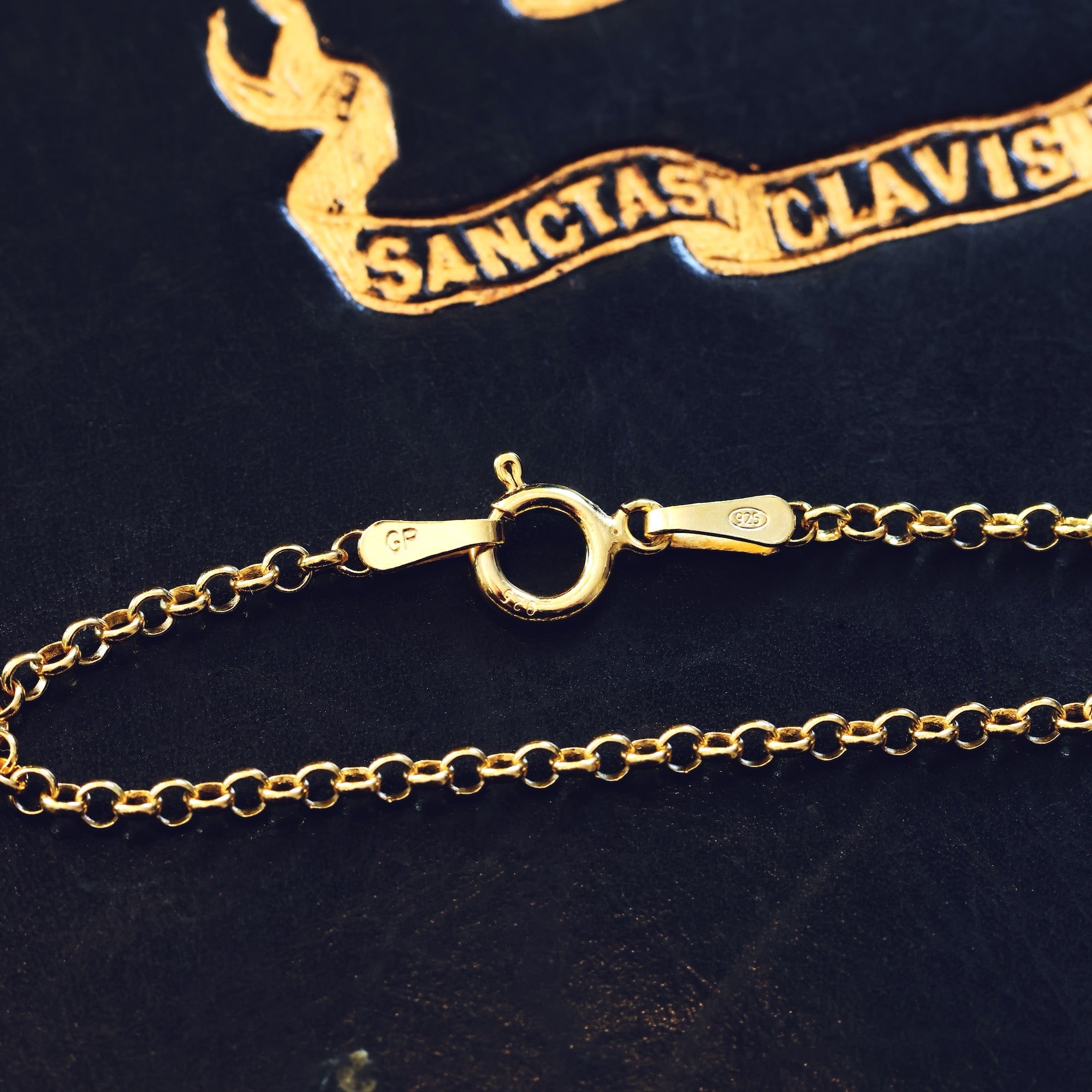 Measurements: 1.5cm lengthwise to the crescent and the 18ct Gold plated Silver chain is 18 inches in length. The rings are 9ct Gold.