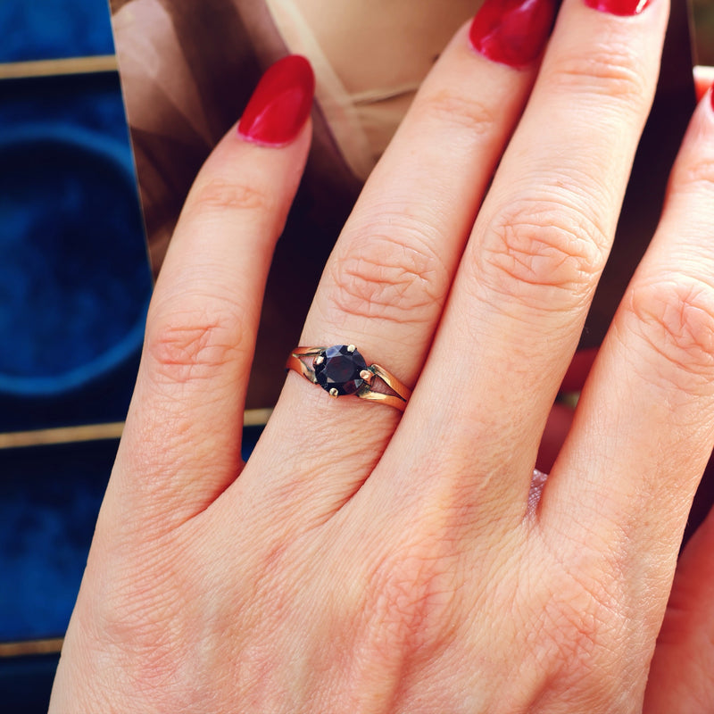 Antique Arts & Crafts Era Garnet Solitaire Ring