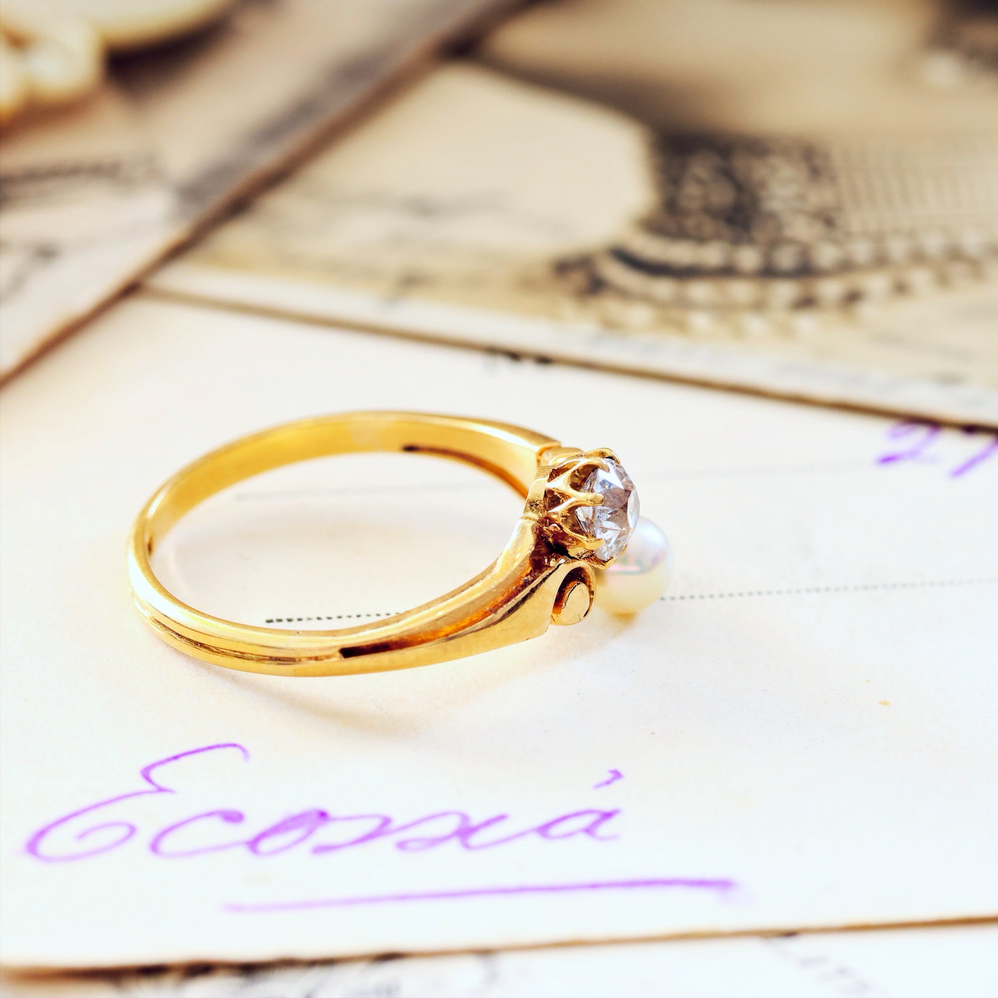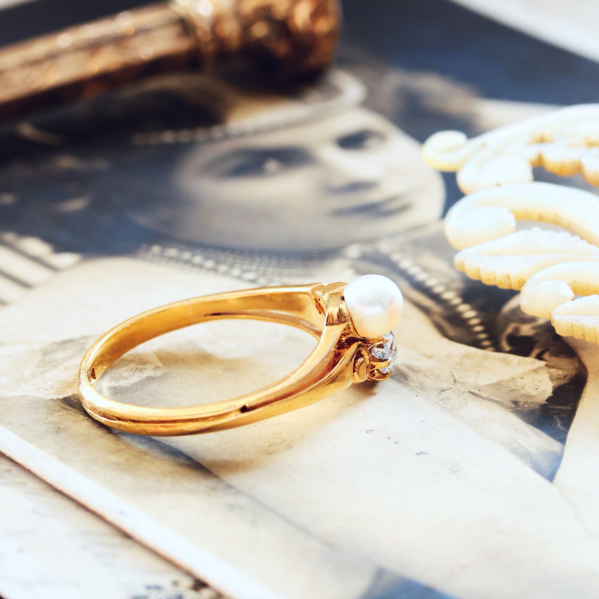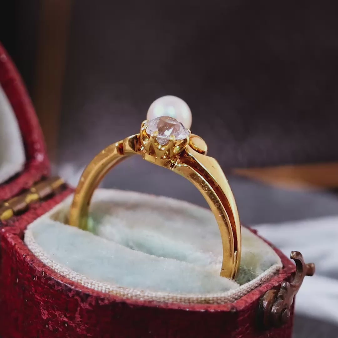 Stones: Cultured Pearl and hand cut natural Diamond measured at 0.35ct
