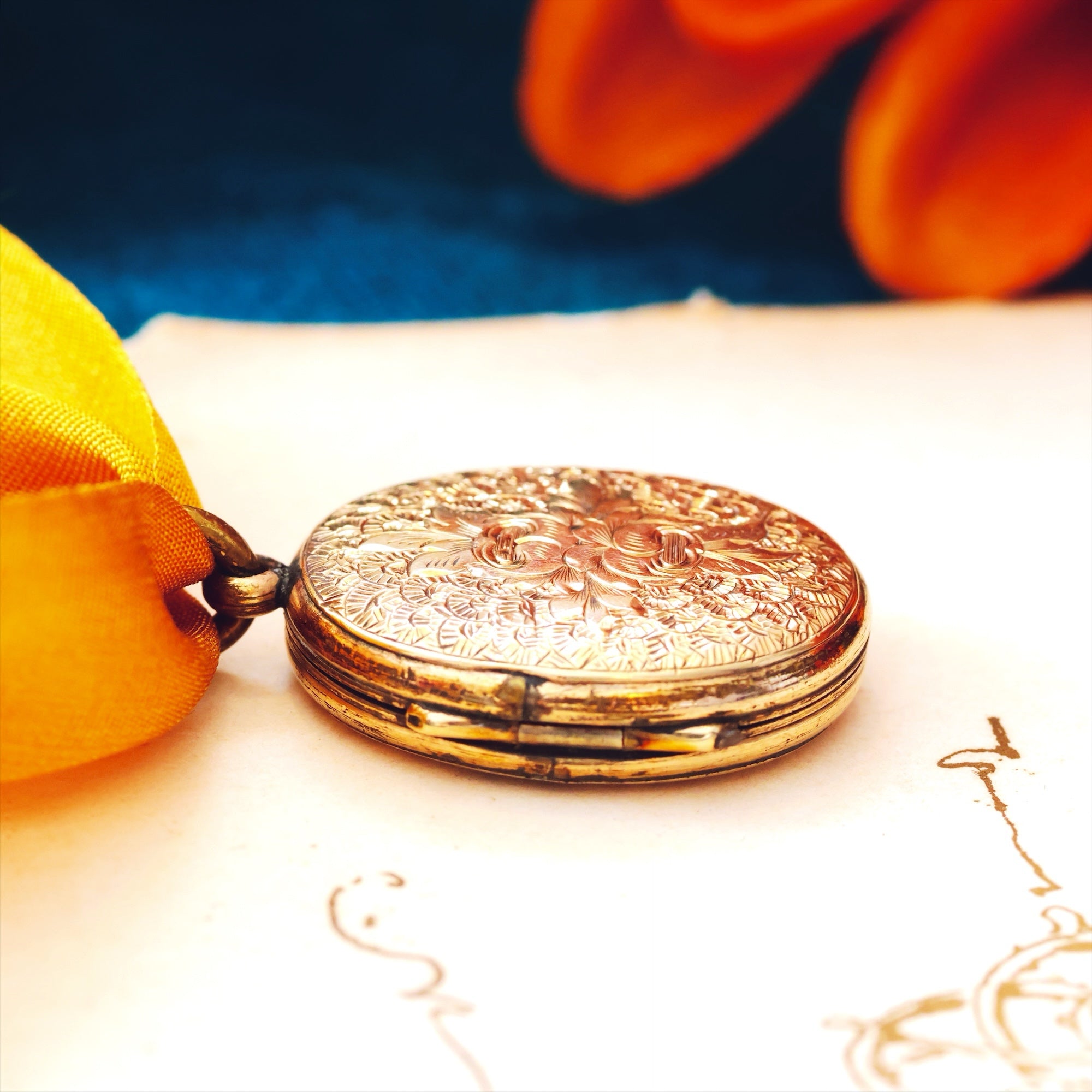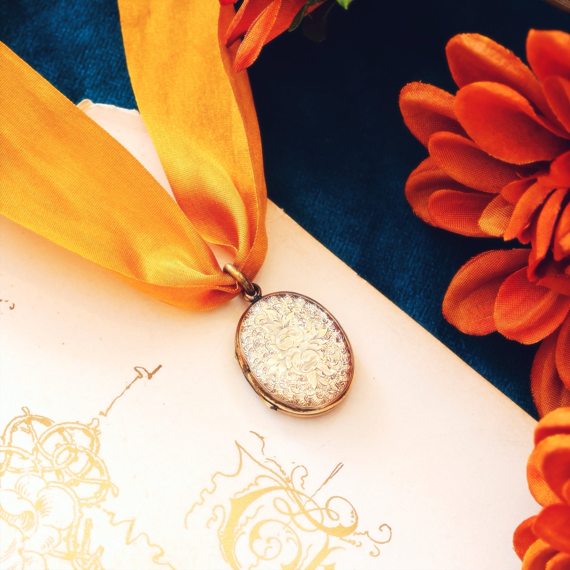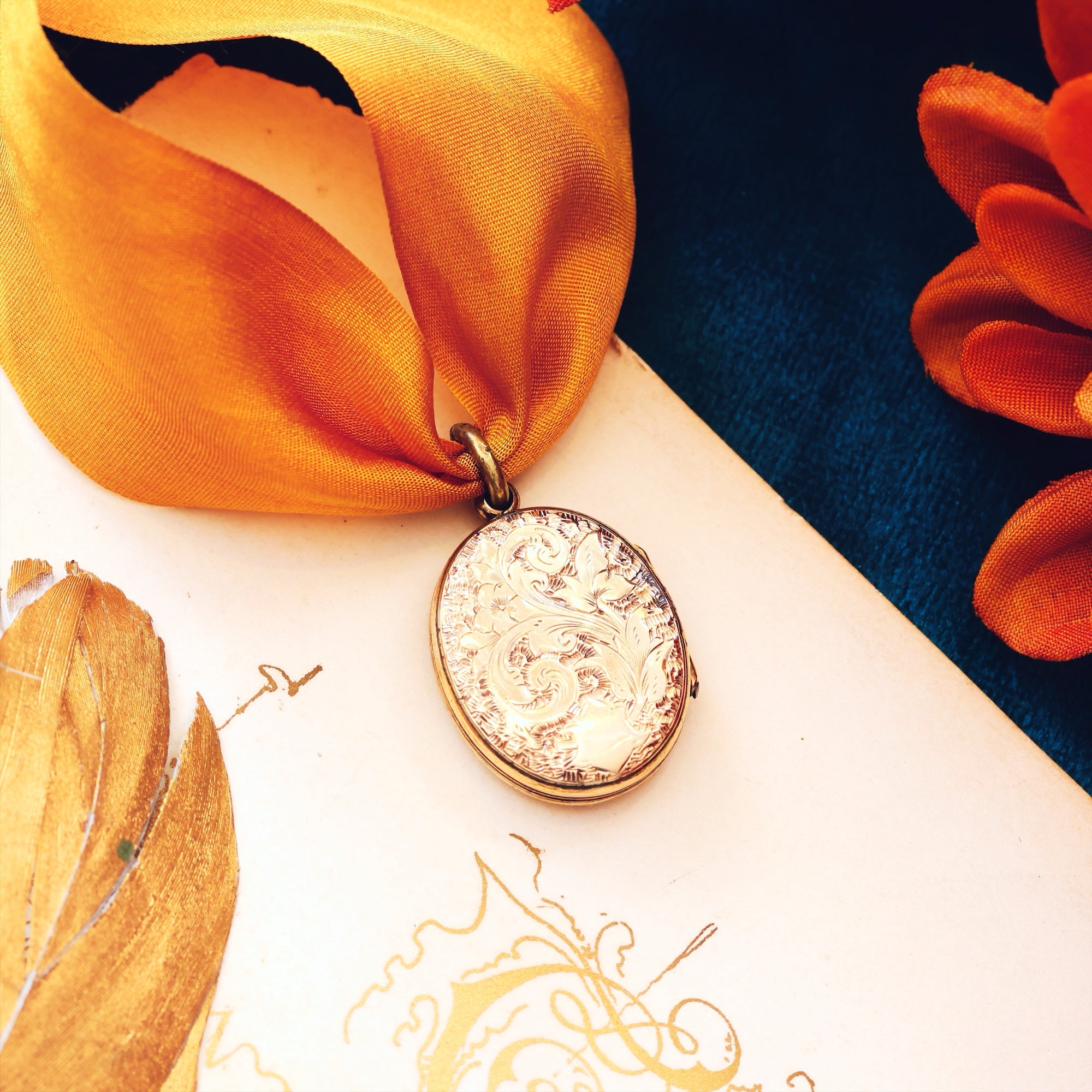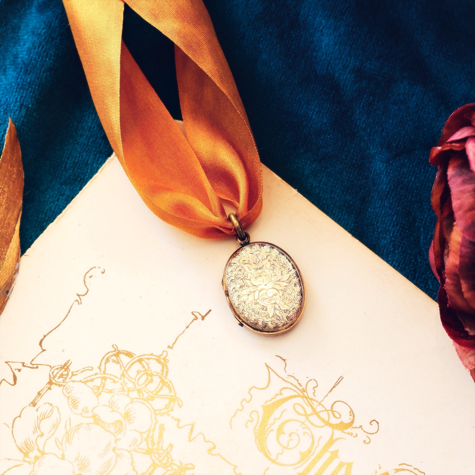 A petite and sweetly sized antique mid Victorian 9ct Gold (back and front) locket beautifully hand engraved with a florid design of a bouquet of Roses (representing LOVE) to the face and scrolling ferns (representing Sincerity) to the reverse. A sentimental and intimate gift for someone special.