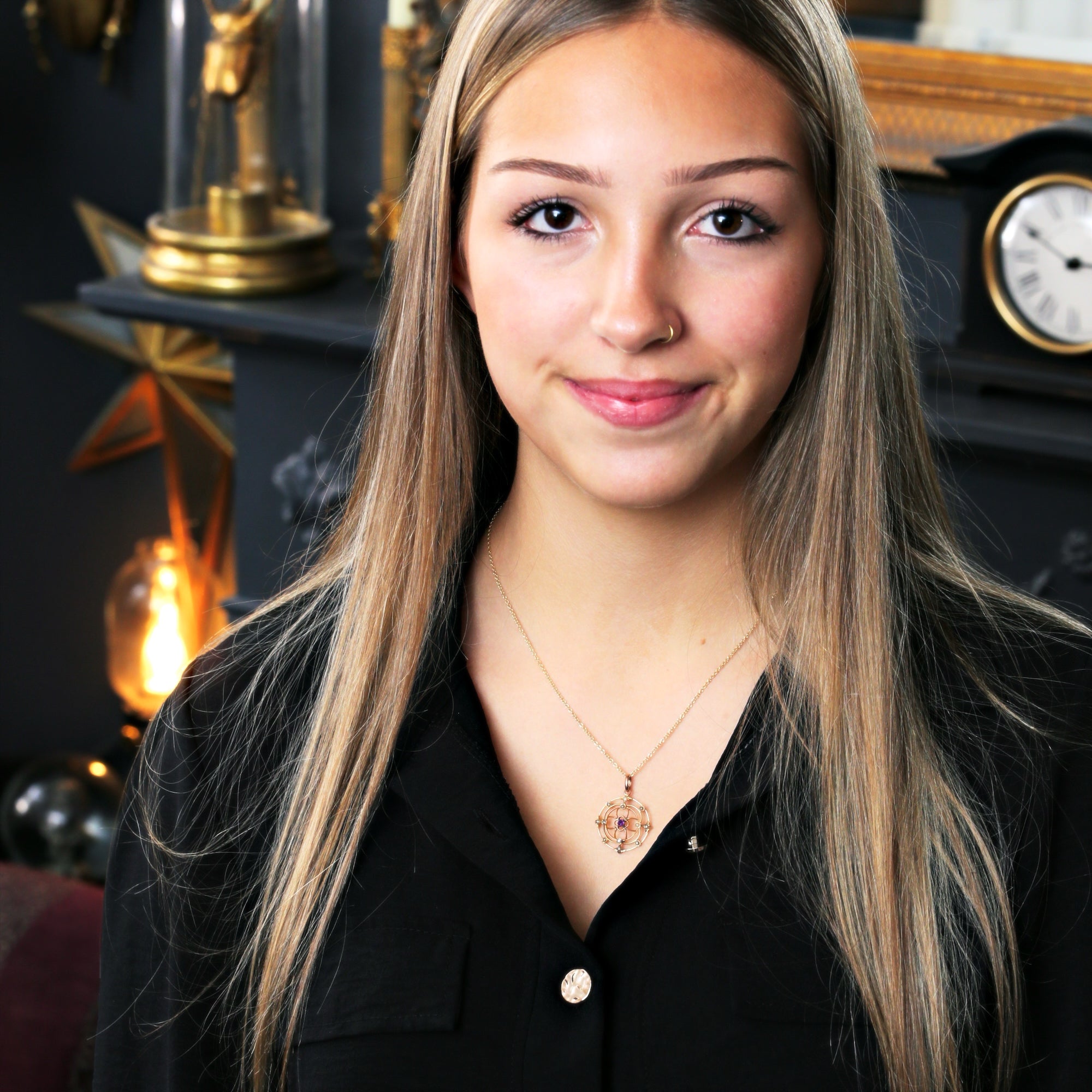 Measurements: measuring 2.5cm across, the chain is of 9ct Gold and measures 18 inches.