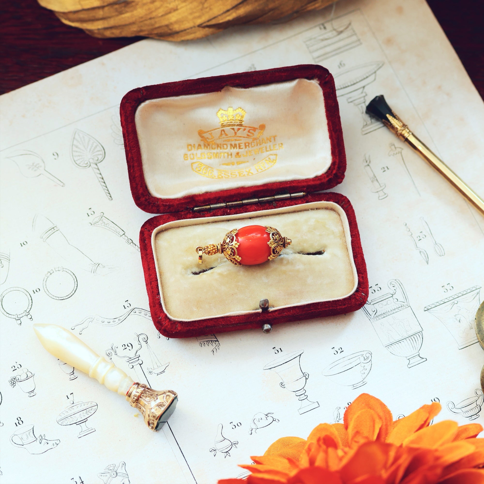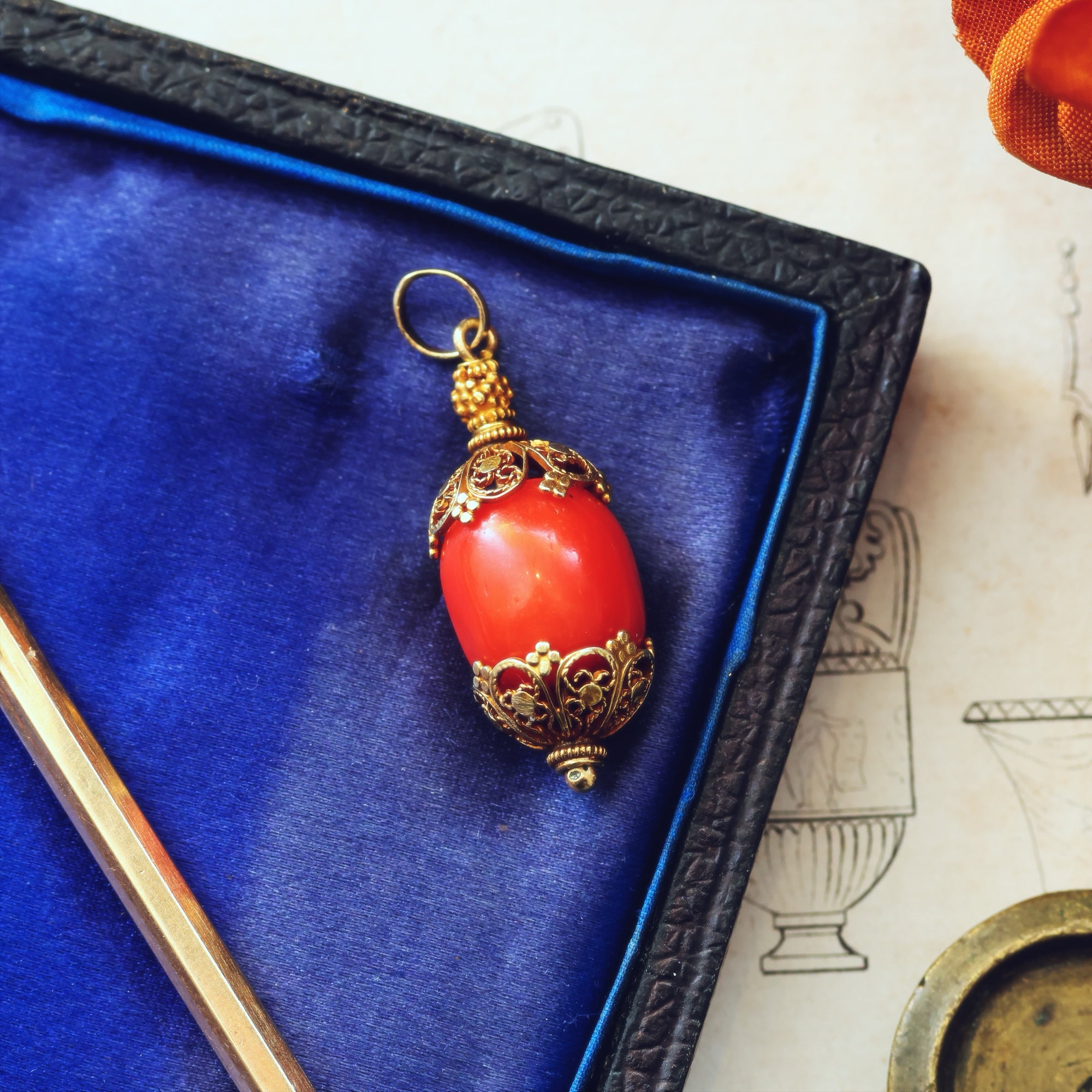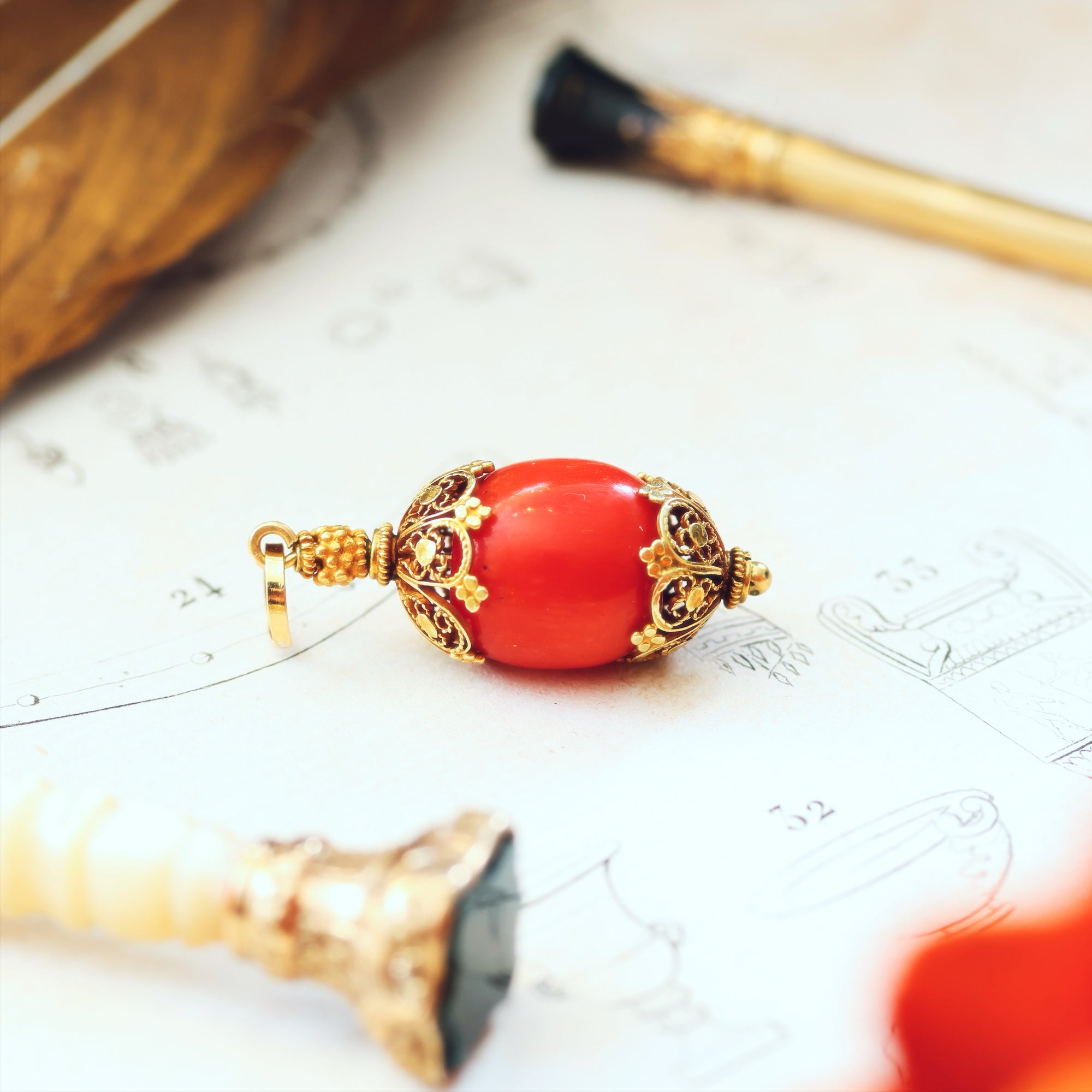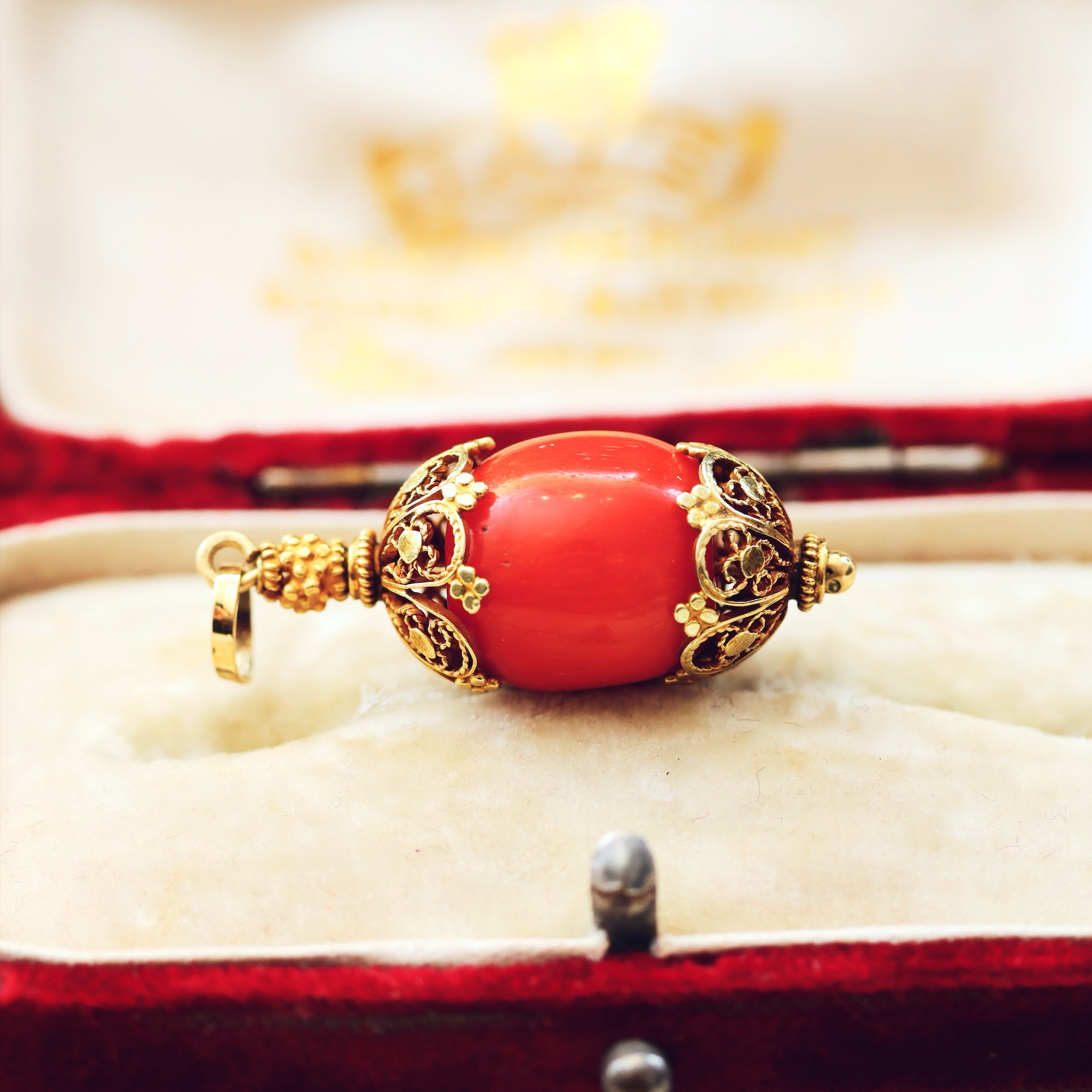 Antique Filigree Coral Charm Pendant
