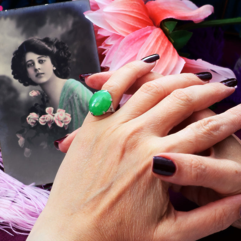 Vintage 1920's Art Deco Jade & Diamond Cocktail Ring