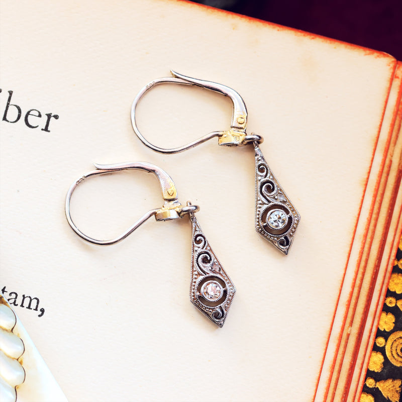 Darling Vintage Filigree Diamond Earrings