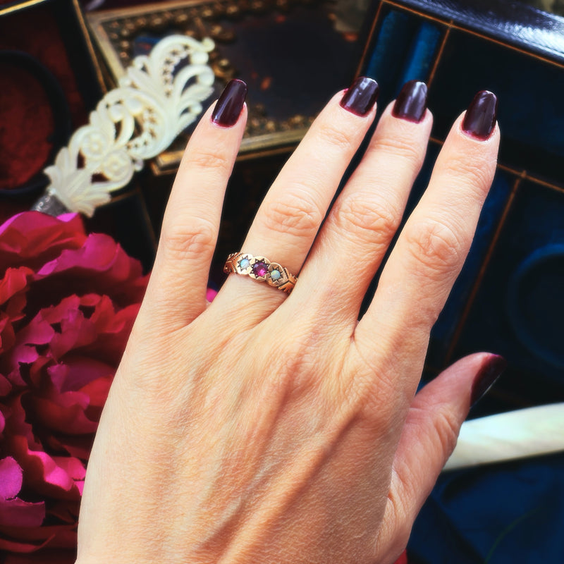 Scarce Antique Georgian Pearl & Garnet Flowerette Ring