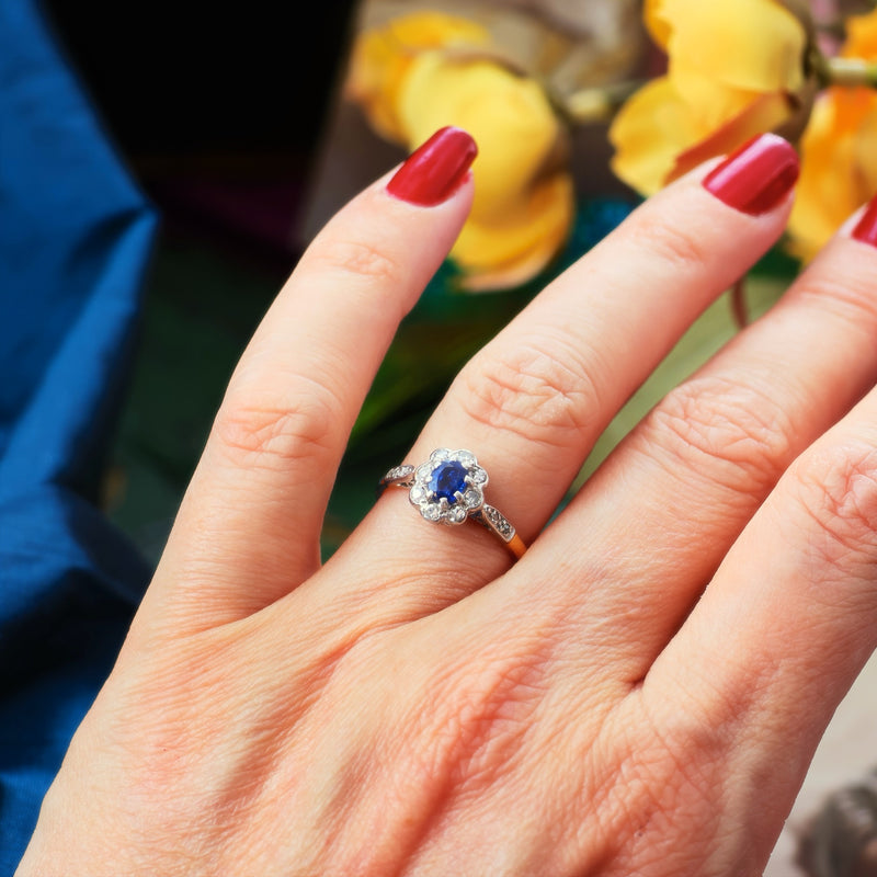 Vintage Flowerette Sapphire & Diamond Cluster Engagement Ring
