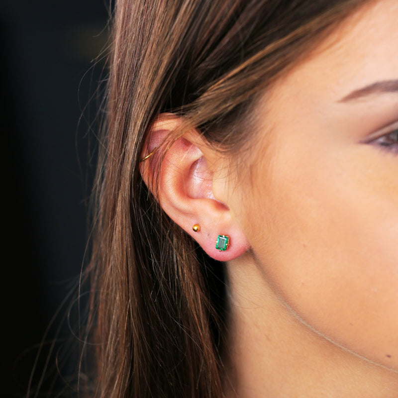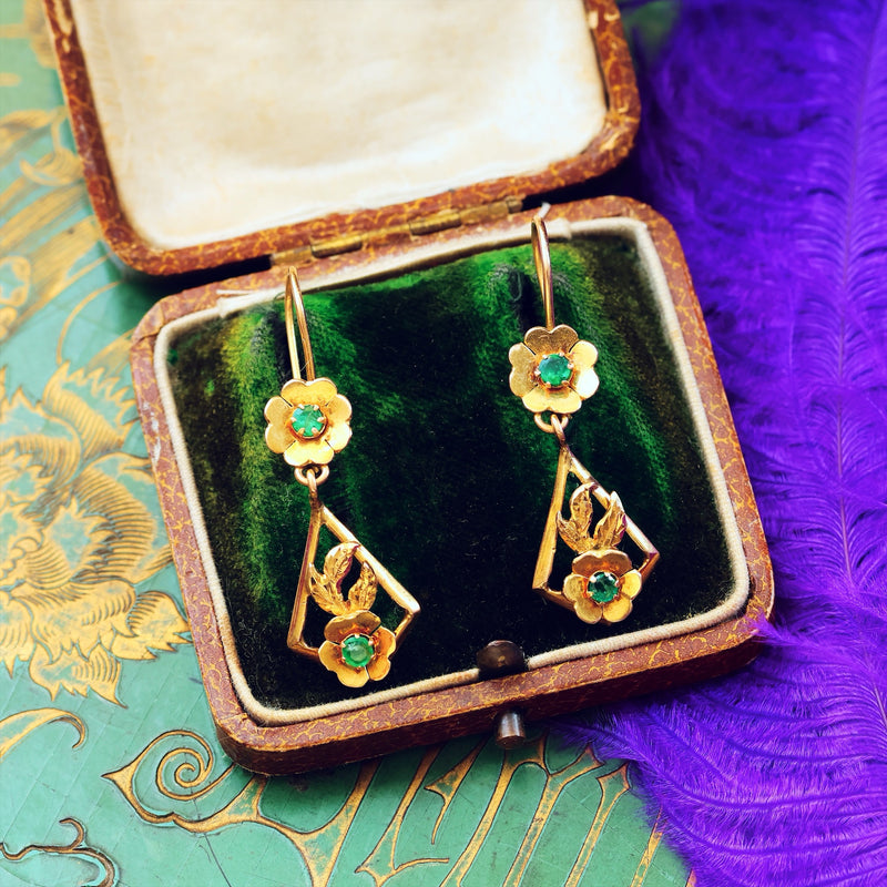 Handmade Vintage 1940's 18ct Gold Emerald Earrings