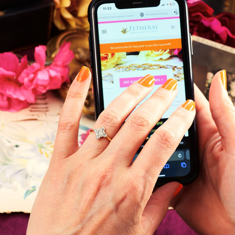 Adorable Vintage Art Nouveau Diamond Flower Ring