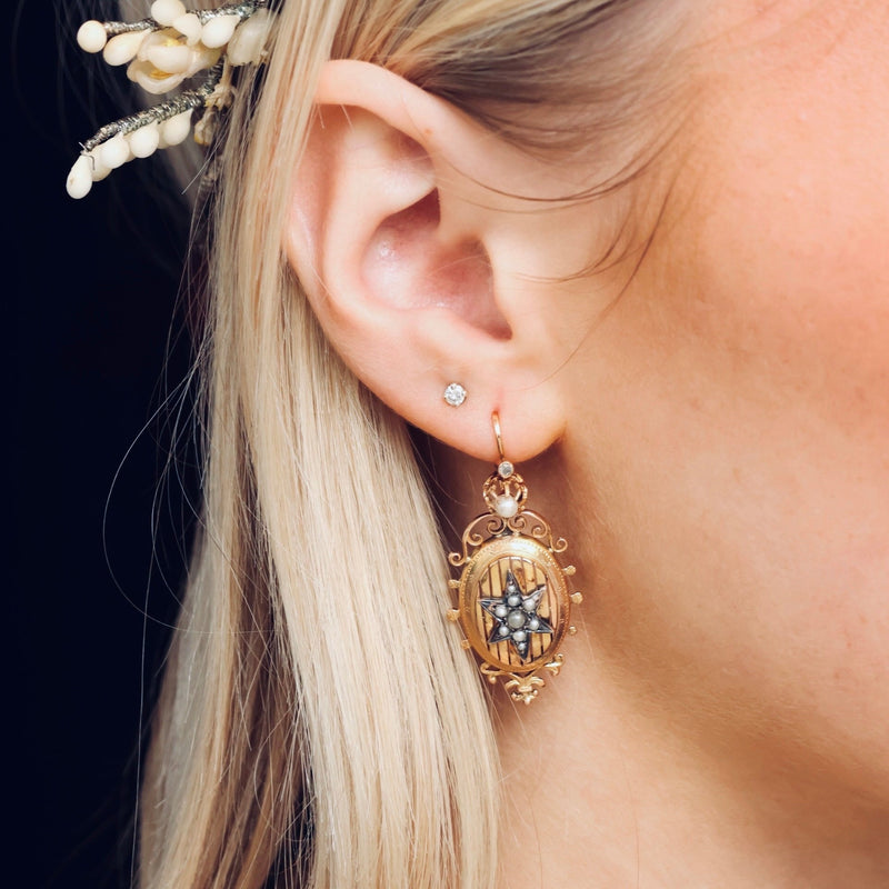 Ear-blings!! Beautiful boucles d'oreilles...decor for your ears! We look out for colour and historical interest alongside those hand crafted details which capture our hearts. We've many more vintage and antique earrings in the shop, just reach out and ask!