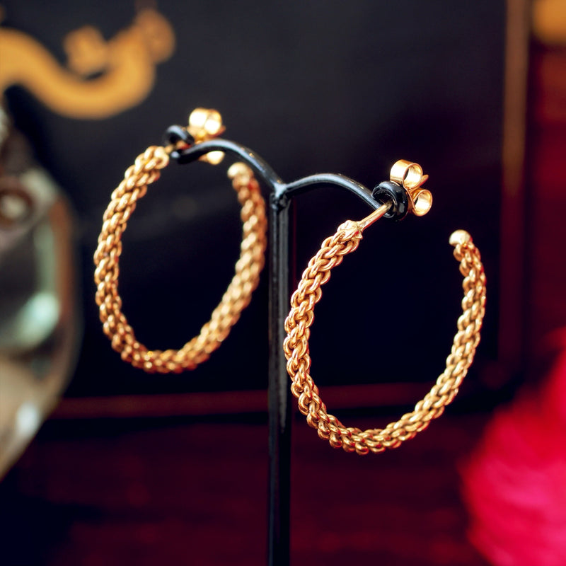 Amazing! Vintage 1970's Woven Gold Hoop Earrings