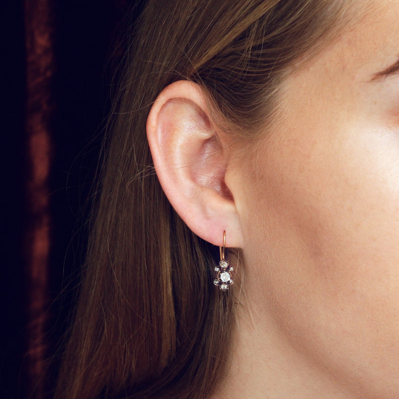 Antique Hand Cut Diamond 'Poissarde' Style Earrings