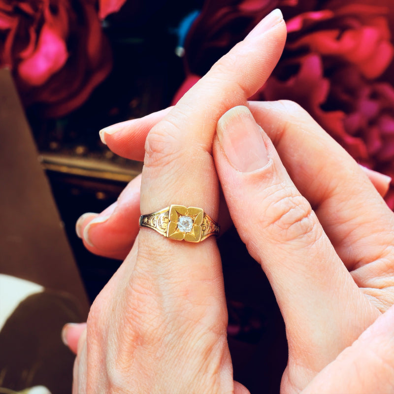 Traditional and modern, vintage and antique rings for men. An individual statement; we look out for intricacy and history within these pieces and many of the rings in this category are unisex and can be adjusted to suit a range of hand sizes. All of our rings can be viewed in our shop in Brighton Lanes Jewellery Quarter.