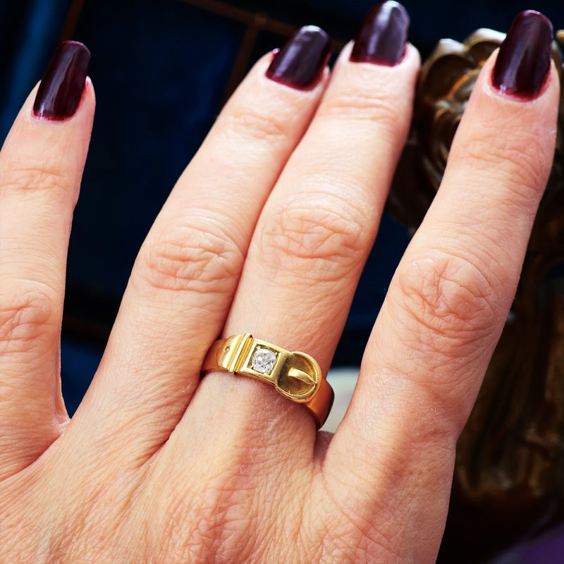 Antique Unisex 18ct Gold Diamond Buckle Ring
