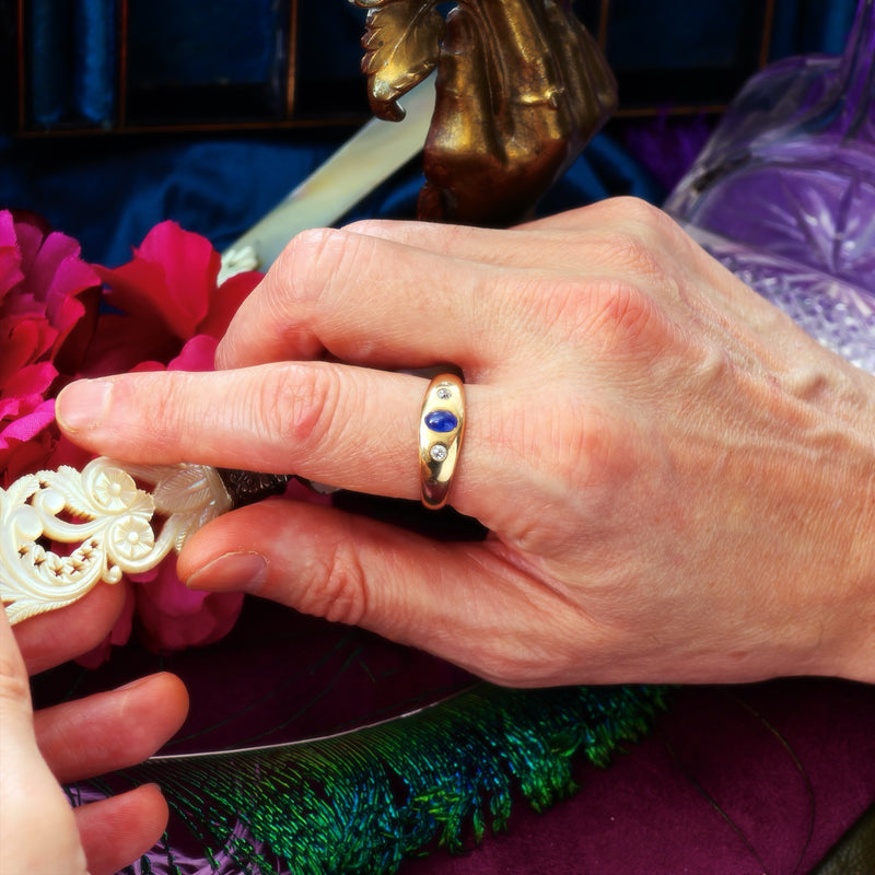 Vintage Gypsy Set Unisex Cabochon Sapphire & Diamond Band