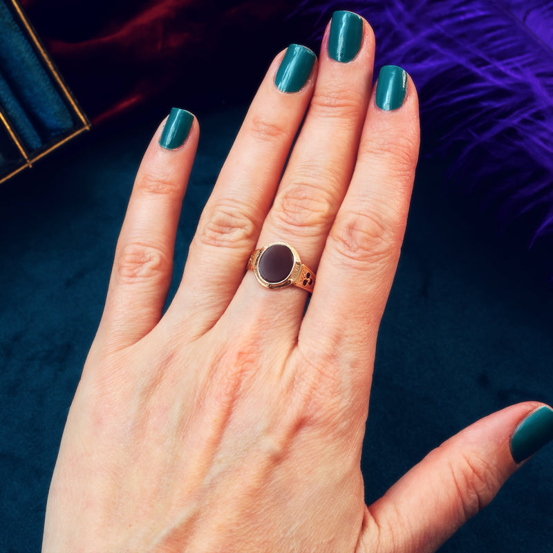 Striking Art Deco Date 1955 Bloodstone Signet Ring
