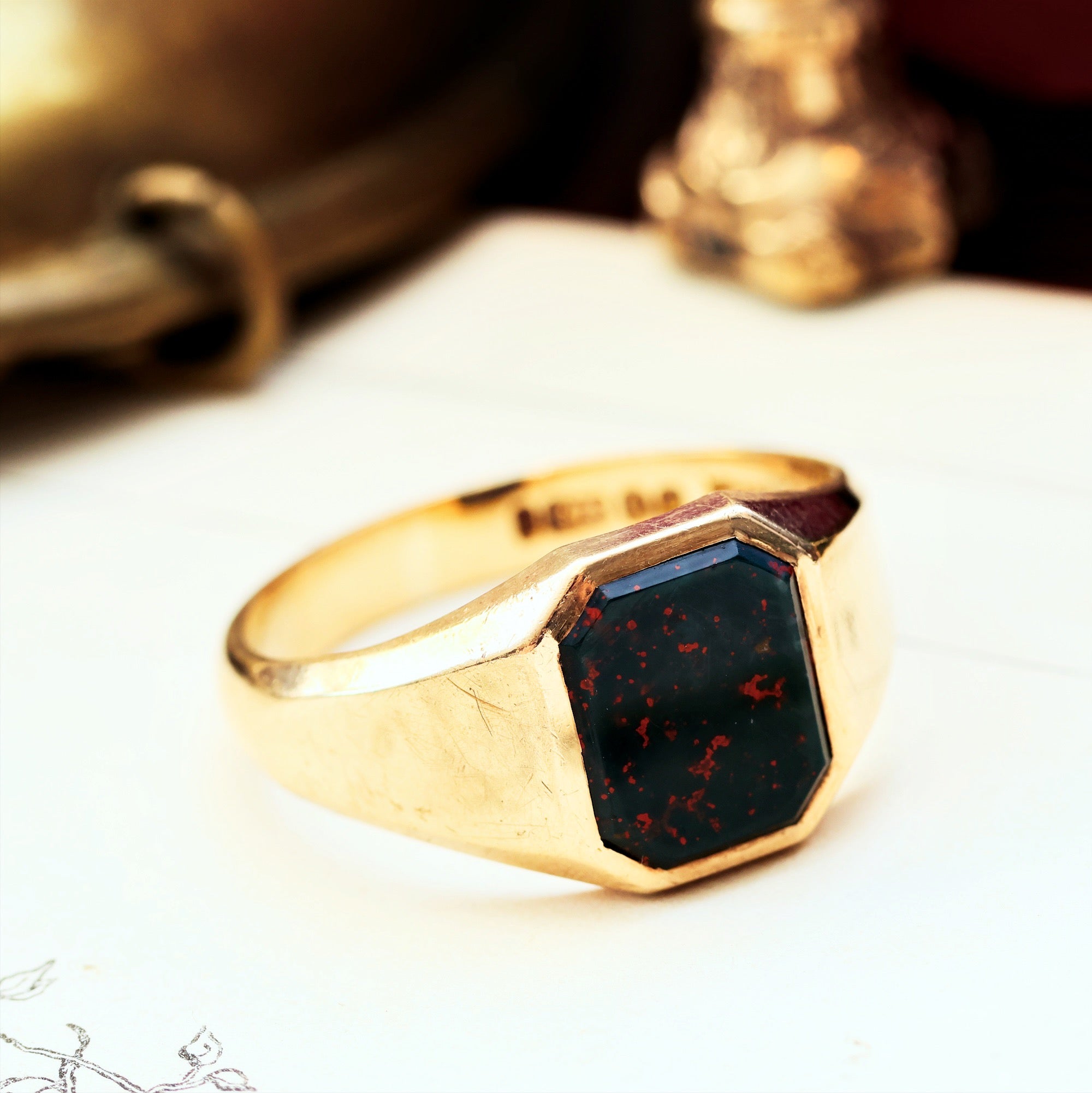 Striking Art Deco Date 1955 Bloodstone Signet Ring