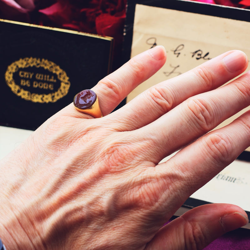Vintage Russet Carnelian Intaglio Signet Seal Ring