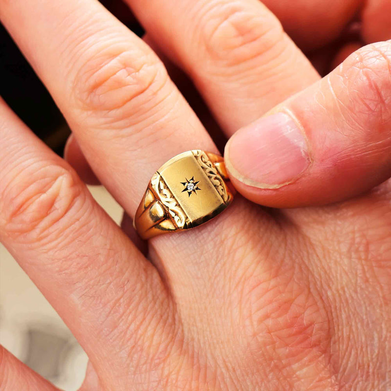 Vintage Star-set Diamond Signet Ring