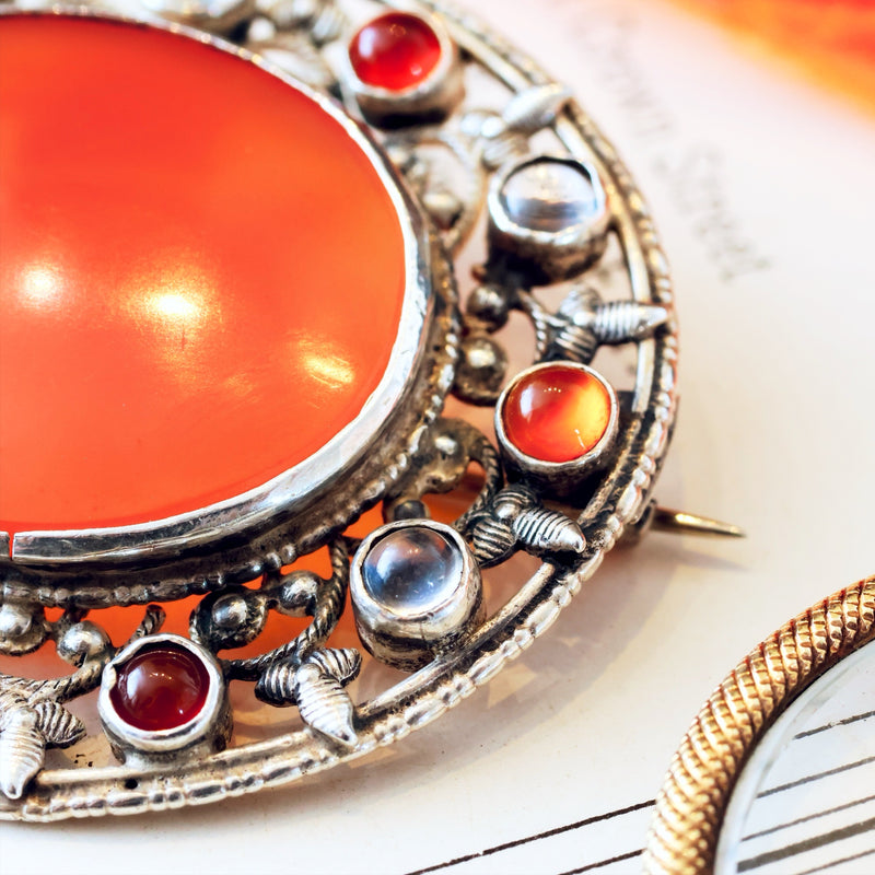Antique Arts & Crafts Moonstone Carnelian Brooch