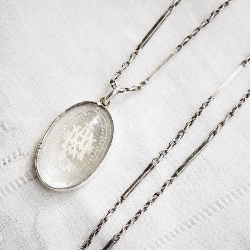 Exquisite Reverse Carved Monogram Rock Crystal Pendant