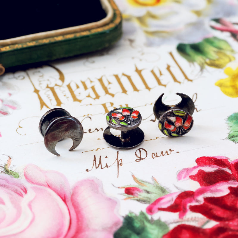 Antique Silver Art Nouveau Stargazer Lily Dress Studs