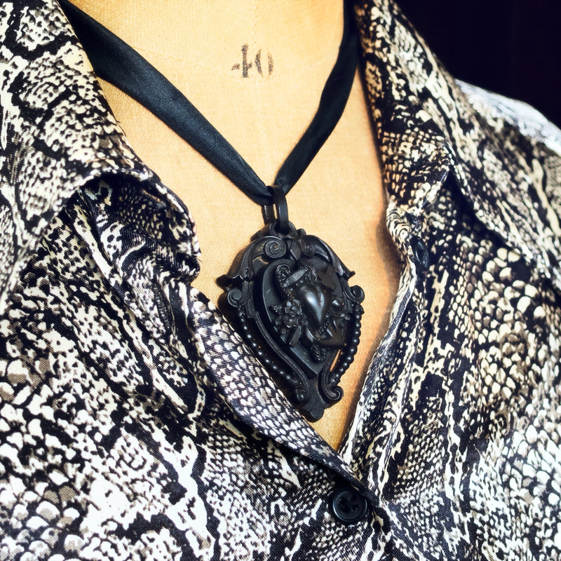 Victorian Gothic Vulcanite Faith, Hope & Charity Locket