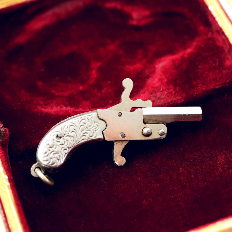 Antique Novelty Berloque Miniature Flintlock Gun Watch Fob